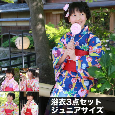 【浴衣セール】浴衣 セット ジュニア 作り帯 ときめき★ジュニア恋浴衣3点セット 140cm 150cm 女の子 子供 中学生 レディース 大人 Sサイズ 女性 女 レトロ 古典柄 モダン 大正ロマン 2018