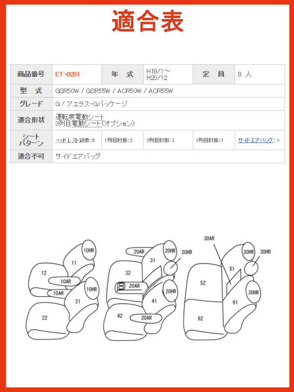 エスティマ/H18.1〜H20.12/GSR,ACR5#系/3列目電動シート/8人乗り/トヨタ/クラッツィオ SW シートカバー/アイボリー,タンベージュ,ライトグレー,ブラック/clazzio クラッチオ/ET-0291