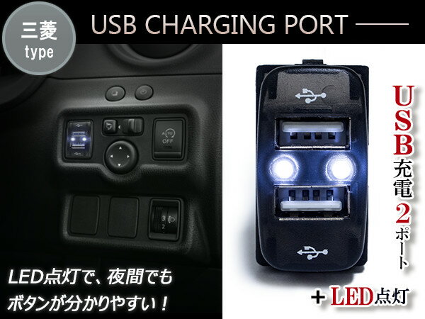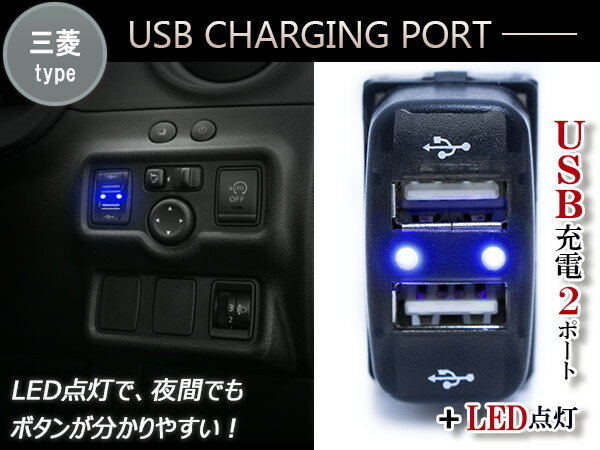 LED付き USB2ポート 充電用 USBスイッチ ミツビシA 三菱 アイシス HA1W グランディス NA4W デリカD:5 D5 CV1/2/5 【USB増設 スマートフォン スマホ タブレット 車 内装 スイッチパネル スイッチホールカバー ブルー 青/レッド 赤/グリーン 緑/ホワイト 白】